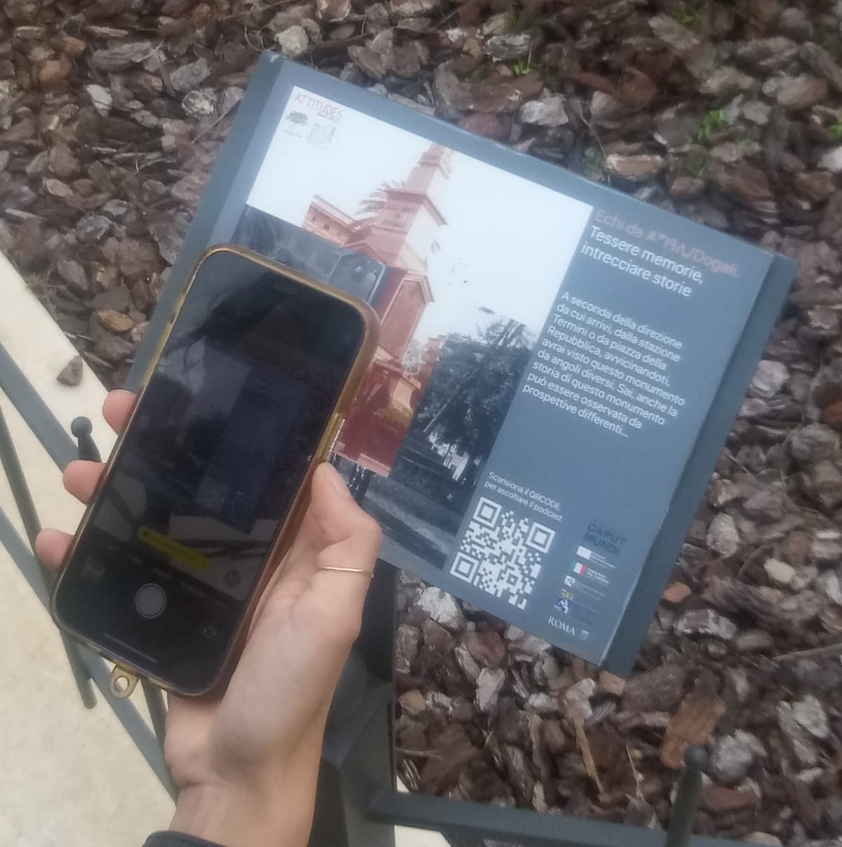 - la targa con l’immagine elaborata dall’artista e il QR Code dal quale accedere al podcast